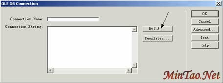 接着进入 OLE DB Connection 对话框。这里可以手写链接数据库代码,也可自动生成代码。将Connection Name命名为location,单击Build,通过向导自动生成代码。