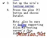 先完成设置,单击deplay,程序会将自动部署站点,会将DreamweaverCtrls.dll,web.config以及_mmServerScripts文件夹拷贝到站点目录,是用Dreamweaver MX建立ASP.net网页必需的文件。