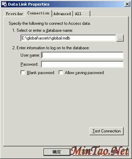 单击1.Select or enter a database name 旁的按钮,选择所要链接的数据库