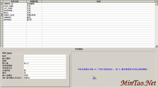 由于数据项COMMENT需要输入大量的文字,所以需要用到多输入行的textbox。只需设置text mode为MultiLine并输入所需的行数(Rows)即可。