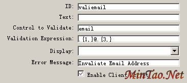 但是很多时候我们需要验证有效的数据,比如邮政编码一定为6位,输入的Email地址需要有特定的形式。这里就需要用到RegularExpressionValidator来验证数据的有效性。在本注册页面中,telephone和Email都可以用到此控件来验证。