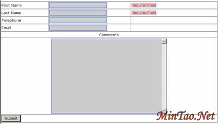 COMMENT_ID(自动编号),FIRST_NAME(文本),LAST_NAME(文本),TELEPHONE(文本),EMAIL(文本),SUBMIT_DATE(日期/时间),COMMENTS(备注),ANSWERED(布尔值)等字段。根据需要我们在站点中设计了如下图的页面,命名为reg.aspx。