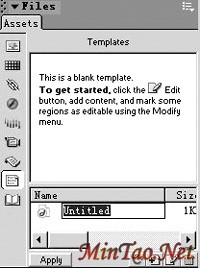 2、找到“Assert”子选项,在左边的工具栏中单击“Templates”按钮,此时的模板为空,我们可以在右下角单击“New Template”按钮,一个空白的模板就会出现在面板中(如图1),点击模板名称,是模板进入可编辑状态。注意,此时的模板还没有任何添加任何元素,我们可以像编辑普通网页一样在模板上添加表格、图像、文字等。添加完后,保存模板,可以在默认站点文件夹的“Templates”子文件夹下找到刚才做好的模板,扩展名为.dwt。 如果嫌这样麻烦,DW MX还提供了一种更直接的方法,编辑好要保存为模板的网页后,在“File”菜单中点击“Save as Templates”,即可生成模板。 3、模板生成之后,还要建立可编辑区域,为将来填入不同的网页内容做准备。打开模板,单击菜单“Insert/Template Object/Editable Region”,出现可编辑区域对话框,指定区域名称后,可以看到模板中出现了蓝色的方框。 保存后就建立了可编辑区的模板。 4、如何批量生成网页呢?单击菜单“File/New”,选择“Templates”选项,马上就可以看到建立生成的模板,单击“Create”按钮,模板就开始自动套用在网页上。这个时候我们可以看到,原来的模板区域是黄色,其中的元素已经固定,不能编辑,而我们刚刚指定的可编辑区域是蓝色,可以编辑。这样一来,不但大大简化了我们生成相似网页的工作量,而且有效地保证了网页风格的一致性。 5、最后,就是关联网页批量更新,这是大型网站更新网页时必不可少的一项技术,在DW MX中可以轻易实现。因为我们所有的网页都套用了相同的模板,而且这些网页都被保存在同一个站点目录下,当我们要对所有网页的公共元素进行改动时,只需修改模板中的元素即可。 打开“Templates”子选项,双击关联网页的模板,这时候模板进入了可编辑状态,黄色区域消失,改变了模板的内容后,保存时就会出现一个提示对话框:“下列网页使用了当前模板,是否进行更新?”(如图2)单击“Update”,此时,网站中所有基于模板创建的关联网页都将得到更新(如图3)。 图2 图3 与模板类似,DW MX的库就显得更加灵活,在“Assert”选项卡上单击“Library”,打开库,暂时库中没有任何元素,我们把网页中要生成库的元素,如表格、图像,直接拖到库面板中即可(如下图)。 注意,库中的元素决不仅仅是图像或文字本身,而且还包含了网页中排列这些图像的代码。因此,我们也可以像模板中一样,在网页上添加相同的库元素,从而批量生产风格类似的网页。这时,我们只要在库面板中将元素拖回到新网页上即可,而相关的代码会自动复制到新网页上。 而且,库元素也可以实现网站的批量更新,我们在库面板中单击库元素,使库进入可编辑状态(如图5),当改变了库元素并进行保存时,凡是使用了库元素的网页,会自动进行同步更新。 图5 最后,对于自动更新还有一点补充:如果一个网页是应用了模板生成,然而自动更新时又想将它保持原状,不随着站点其余的网页一起更新,只需单击“Modify/Templates/Detach from Templates”,此时,这个网页就不再受到模板的约束,需要手动才能更新网页。