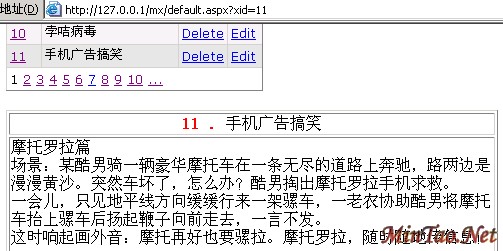 为了方便说明,我们把细节页的要素也放在default.aspx页面中。