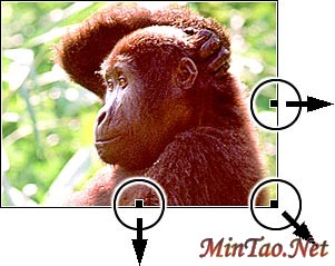 2、图片的长宽,如果图片长于宽跟原图的大小不一致的话,这里的数字会用粗体显示;点取一张图片,你可以看到图片会被套上一个框和三个点,三个点分别代表将图片向三个不同的方向拉伸,从而达到放大和缩小的效果;在拉伸过程中,按着Shift键,再拖动角上的点,可以使图片保持宽高比例拉伸,如下图。如果要将图片恢复为原始大小,可以按属性面板右下角的“Reset Size”按钮。
