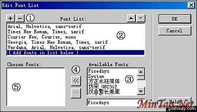 或者选取“Add fonts in list below”(增加字体列表)一项,同样可以增加一个字体列表;