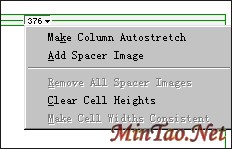 另外,在排版视图上的表格上有一个数字,表示的是表格的宽度,单击数字,可以看到以下菜单: