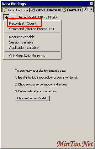 点击 Recordset(Query)打开Recorset面板,如下图所示: