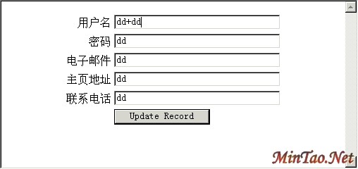 点击Update Record按钮后跳转到显示页面,如图所示,我们的数据已经被更改了,呵呵,开心吧!