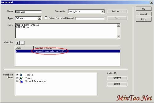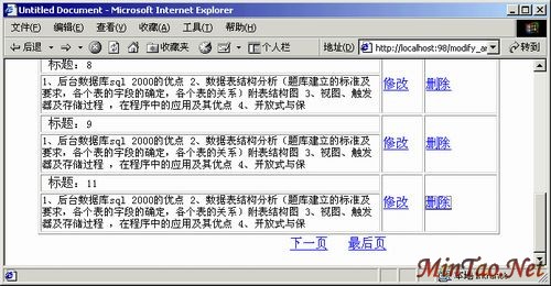 删除的页面怎么做呢?咦?忘了我们上面讲的吗?用command对象,很简单就完成了: