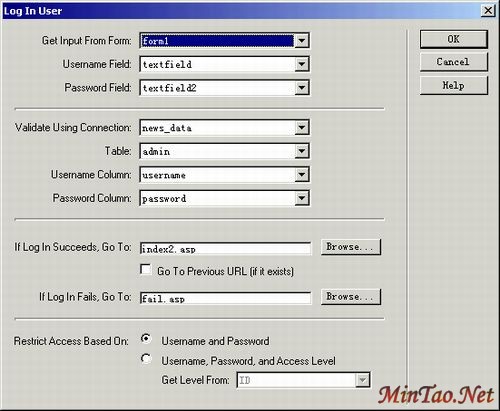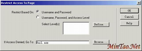 If Access Denied Go To:如果未经验证的话跳转到哪一页。这里为fail.asp。