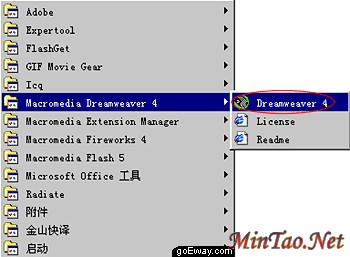 Dreamweaver的安装过程非常简单,一但成功安装后,就可以在开始菜单找到Dreamweaver的选项: