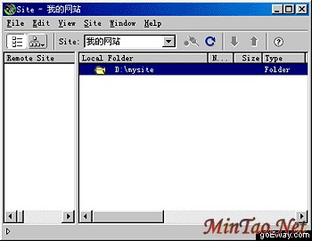 可以看到,“我的网站”的名称已经出现在站点窗口了,因为是新建的一个站点,所在在本地目录看到的一片空白。
