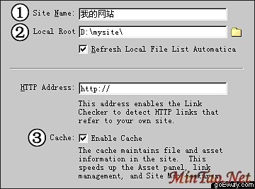 ③ Cache(缓存):建立缓存可以使文件的移动、改名、查找等站点管理的操作速度大大提升,因此建议大家在这里打上钩。