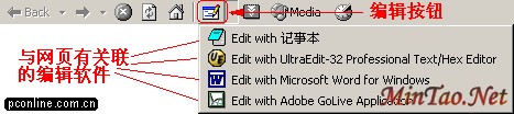 IE中的编辑按钮(笔者的IE版本是6.0第二个测试版,所以是英语的)。