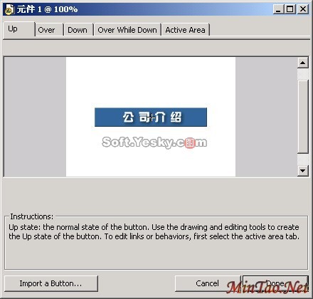 第二步:在Fireworks中进行所需的编辑。此例中我们将“关于我们”改为“公司介绍”,我们只需要双击“关于我们”按钮打开按钮编辑器修改文字就可以了,如图20所示。