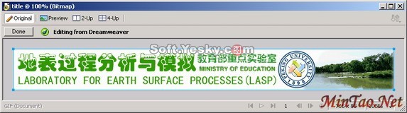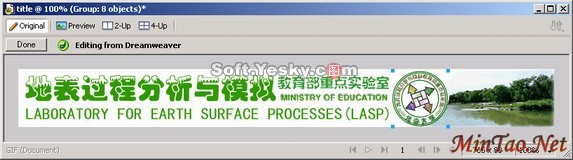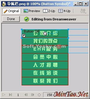 最后,完成编辑后,在文档窗口中单击“完成”,图像将使用当前的优化设置导出,Dreamweaver使用的 GIF或JPEG文件将被更新,如图26所示。如果选择了源文件的话PNG源文件还将被保存。Dreamweaver识别并保留在 Fireworks 中应用于图像的所有编辑。原文件下载