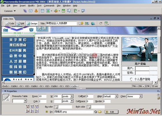 Fireworks能够识别并保留在Dreamweaver中对文档所做的大多数类型的编辑,包括更改的链接、编辑的图像映射、HTML切片中编辑的文本和HTML以及在Fireworks和 Dreamweaver之间共享的行为。Dreamweaver中的属性面板帮助识别文档中Fireworks生成的图像、表格切片和表格。下面分别看看表格和图像的编辑。