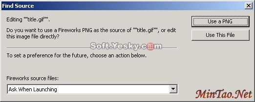 * Never Use Source PNG:不管源PNG文件是否存在,都自动启动放置的Fireworks图像,并且仅更新放置的图像。
