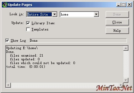 询问是否同步更新本地站点内所有使用该文件的页面。这个功能也就是库文件的最大优点。我们制作完成站点以后将所有文件连同库文件夹一并上传到远程服务器中,那么当我们在连接远程站点的状态下更改某个库文件时,同样的会得到DW的提示。