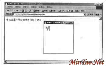 本例中制作了两个页面,如图1所示,Index.html是显示于子窗口中的页面,而在名为firstpage.html的页面中,包含在子窗口中打开Index.html的链接。单击链接时,将在子窗口中打开index.html。可以直接单击子窗口中的“关闭”链接关闭子窗口,也可以不去理睬它,在15秒之后,子窗口也会自动关闭。