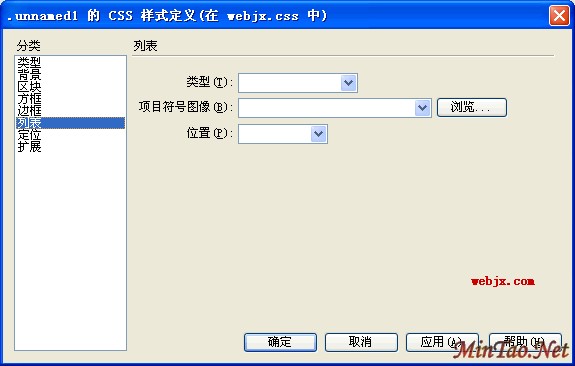 定义列表样式:在“CSS 样式定义”对话框中,选择“列表”(如下图),然后选择所需的样式属性。