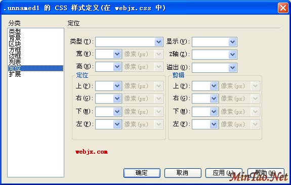 设置层定位属性:在“CSS 样式定义”对话框中,选择“定位”(如下图),然后设置所需的样式属性。