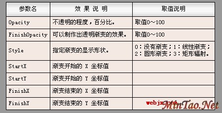 “FinishX”和“FinishY”:代表渐变透明效果结束X和Y坐标。