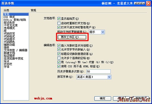 然后在出现的对话中可以切换到另一种不同的工作区。“编辑”菜单“首选参数”对话框如下图: