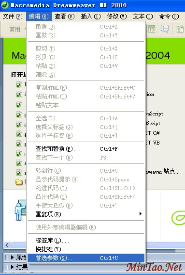 Dreamweaver MX 2004提供了多种此处未说明的其他面板、检查器和窗口。若要打开其它面板,请使用“窗口”菜单。