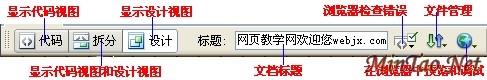 文档工具栏(如下图)包含按钮和弹出式菜单,它们提供各种“文档”窗口视图(如“设计”视图和“代码”视图)、各种查看选项和一些常用操作(如在浏览器中预览)。