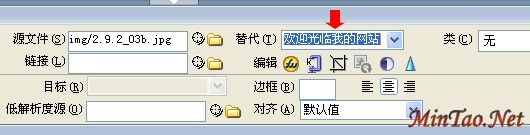 选中图片,在属性面板里“替代”输入框输入“欢迎您…”。