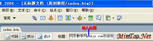 (2)在代码视图,应用“Title”属性来完成。<title>输入标题文字 </title>