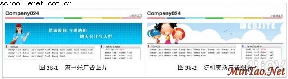 效果说明 在浏览网页时,网页的 banner 区域将出现一张广告图片,如图 38-1 所示。随后每两秒更新一次广告图片,而且广告图片是以随机的方式出现的,如图 38-2 所示。