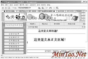 首先需要制作好一个网页(如图1),制作这个网页过程中,需要注意的是,凡是页面上无需变化的部分都预先制作好,并确定在固定的位置上。将需要填写正文文本内容的部分预留出空间,比如文章的标题区和文本正文区。