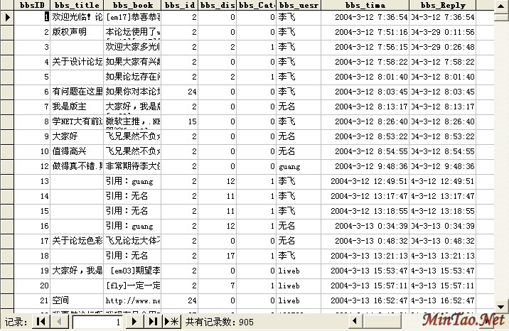 1、设计好你的数据库表,本例用是论坛贴子表,如下图所示: