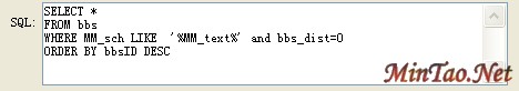 以上两例都是单层SQL查询,你可以依照以上介绍的方法添AND条件,如果要同时查询两个字段,除了用AND外,还可用OR运算符,比如 WHERE bbs_title LIKE '%MM_title%' or bbs_uesr LIKE '%MM_uesr%' ,它查询bbs_title或者bbs_uesr字段符合搜索条件的记录。但有些记录,比如论坛回复贴子,因为它没有标题,bbs_title字段是空的,而我要根据回复内容搜索贴子时,就不能显示出主题标题。如何解决这个问题呢?用嵌套查询可实现这个目的。