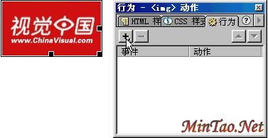 1、插入鼠标没有移上去前显示的图片,打开DW中的行为面板,点击“+”。