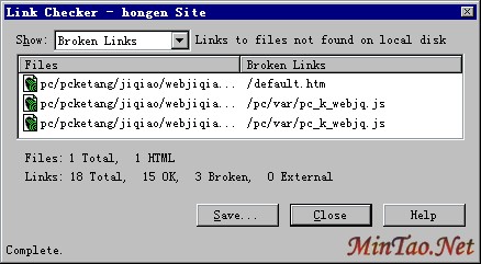 点击“File”菜单下“Check Links”项(快捷键为Shift+F8),Dreamwaver便开始检查当前Site下的所有连接,如果发现了链接的错误则会在弹出的“Link Checker”对话框中列出链接错误所在的页面,接下来我们要做的只是记下出错页面,然后打开页面修改错误,既快又方便。