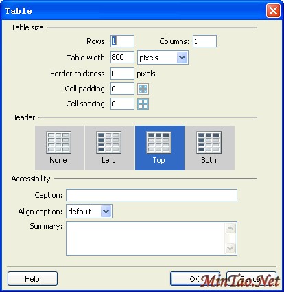 在表格创建的设置面板中,我们可以强烈感受到Dreamweaver MX 2004的巨大改进。和以前一样,选择表格创建之后,Dreamweaver 弹出表格设置框,表格创建的设置选项和以前相比功能多很多。