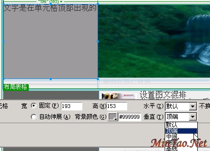 在属性面板中的垂直选项栏选择“顶端”,输入的文字从单元格顶端开始。输入文字常选择这种方式。
