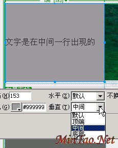 在属性面板中的垂直选项栏选择“中间”,输入的文字从单元格中间开始。