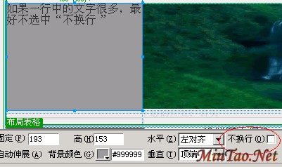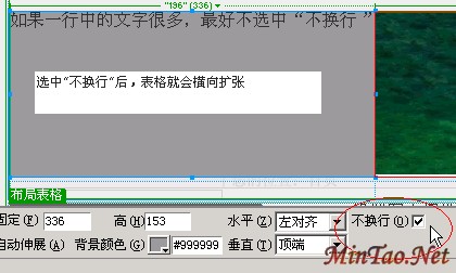 在属性面板中,如果不想文字换行,不要选中“不换行”。这种方式可以保持其它表格不变形。