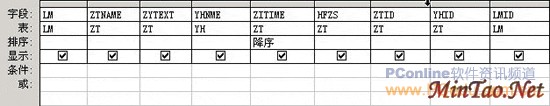 这一节讲解的插入数据集可没有上一节讲解的那么简单。首先看看图4-1-13,每个学习笔记将要显示主题、发表时间、笔记分类(即所属分栏目)、作者(姓名)、回复(个数),再来看看ZT表其设计图(3.2节中的图3-2-2),只有LMID(分类栏目的ID),没有栏目名,这个要连接LM表才能取得;只有YHID(发表者的ID),没有作者的姓名,这个要连接YH表才能取得;其它都可以从ZT表中获得数据。“好复杂啊!”其实不用担心,在Access中就可以解决一切困难。