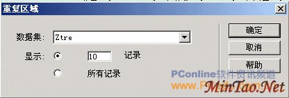 (4)选择表格ztre的第一、二、三行,并把它们定义的重复区域,其设置如图4-2-7所示。