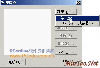 (1)启动Dreamweaver MX 2004,切换到【文件】面板,单击“管理站点”,单击按钮“新建”,如图2-5所示。