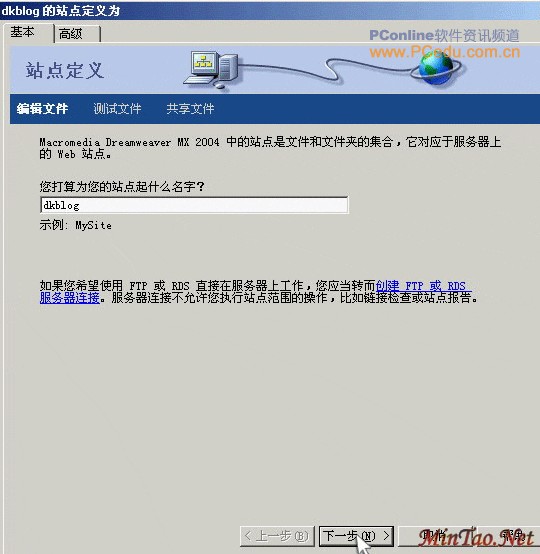 (2)在其下接菜单中,选择“站点(S)”,在弹出对话框中,输入站点名字“dkblog”,结果如图2-6所示。