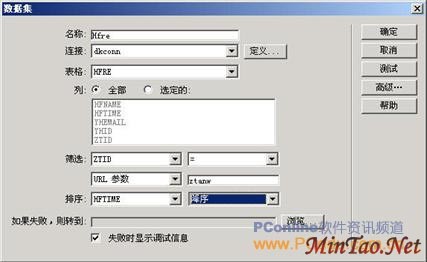 (2)单击“简单”按钮,在【筛选】下拉菜单中选择筛选字段为LMID,选“URL参数”作为参数传递方式,输入参数变量为menanw,按“确定”键,结果如图5-1-6所示: