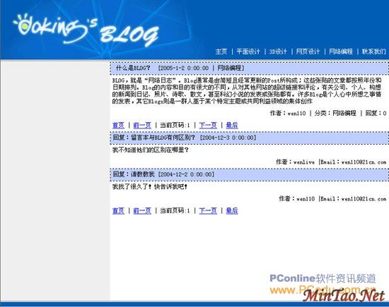 设计思路:修改模板bkblog.dwt.aspx中菜单分栏的超级链接,进而更新所有网页;打开首页时,浏览按时间降序方式显示所学习笔记的内容,点击菜单分栏,又能根据分栏进行按时间降序方式分类显示学习笔记内容。
