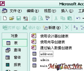 最后还需要一个记录IP对应地址的表,点这里下载,然后打开数据库data.mdb,在"文件"菜单下选择"获取外部数据>>导入",再在弹出的对话框里选择刚才下载的数据库,导入,选择address表,确定,现在数据库data.mdb中应该有这样的三个表: